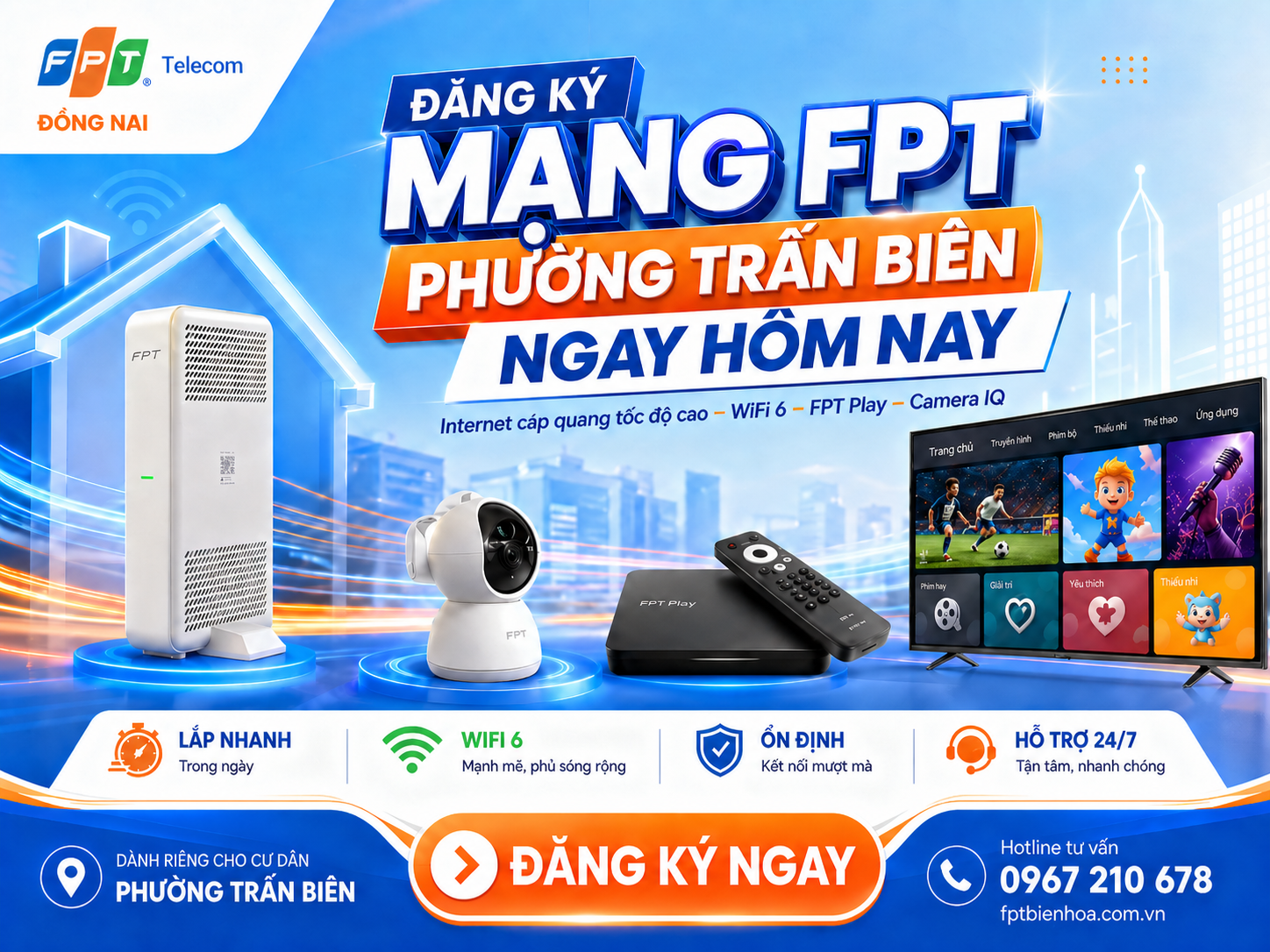 Nếu bạn đang cần đăng ký mạng FPT phường Trấn Biên, hãy liên hệ ngay để được tư vấn gói cước phù hợp, kiểm tra hạ tầng nhanh và hỗ trợ lắp đặt trong thời gian sớm nhất.